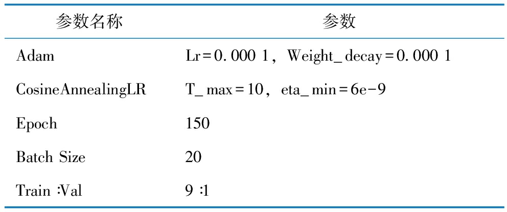 参数名称参数AdamLr=0.000 1,Weight_decay=0.000 1CosineAnnealingLRT_max=10,eta_min=6e-9Epoch150Batch Size20Train∶Val9∶1
