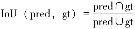 采用一组广泛使用的指标衡量分割性能,包括Dice系数、Jaccard系数和F1分数。Dice系数是集合相似度度量指标,通常用于计算两个样本的相似度,值域为[0,1],分割的最好结果是1,最差结果为0。其中pred为预测结果,gt为真实标签,将预测结果按照大于0.5为1,小于0.5为0转为二值分类形式,分别计算预测正确的像素个数和总像素个数。Jaccard系数又称交并比(intersection over union,IoU),用于比较样本集的相似性,定义为两个集合交集大小与并集大小间的比例。