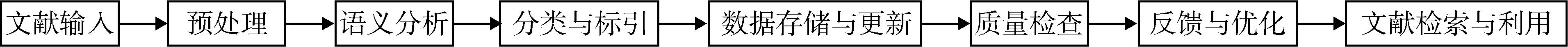 在医学图书馆日常管理中,文献分类与标引是繁重且极具挑战性的工作。传统分类方法依赖人工标注,工作量大且易出错。机器学习和深度学习技术的发展为自动化分类与标引提供了新方案,通过对文献内容的语义分析,可实现全文资源自动化分类与标引[5],已成为提升图书馆文献管理效率的有力工具。该技术的应用减轻了工作人员的负担,使科研人员能更迅速、便捷地检索所需文献,确保文献数据一致性和标准化,为信息检索与知识发现奠定坚实基础。医学图书馆自动化分类与标引工作流程,见图1。