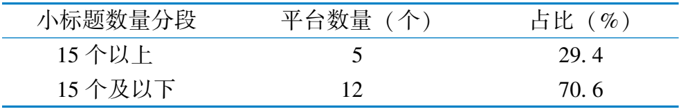 小 标 题 数 量 分 段 平 台 数 量 ( 个 ) 占 比 ( % ) 1 5 个 以 上 5 2 9 . 4 1 5 个 及 以 下 1 2 7 0 . 6