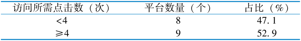 访 问 所 需 点 击 数 ( 次 ) 平 台 数 量 ( 个 ) 占 比 ( % ) < 4 8 4 7 . 1 ≥ 4 9 5 2 . 9
