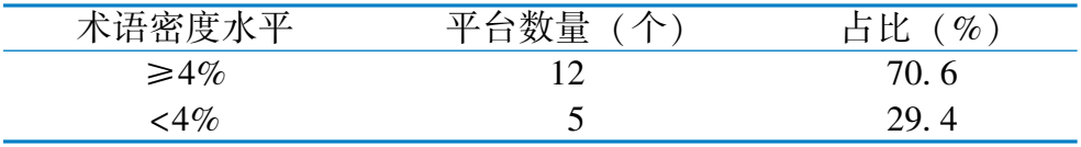 术 语 密 度 水 平 平 台 数 量 ( 个 ) 占 比 ( % ) ≥ 4 % 1 2 7 0 . 6 < 4 % 5 2 9 . 4