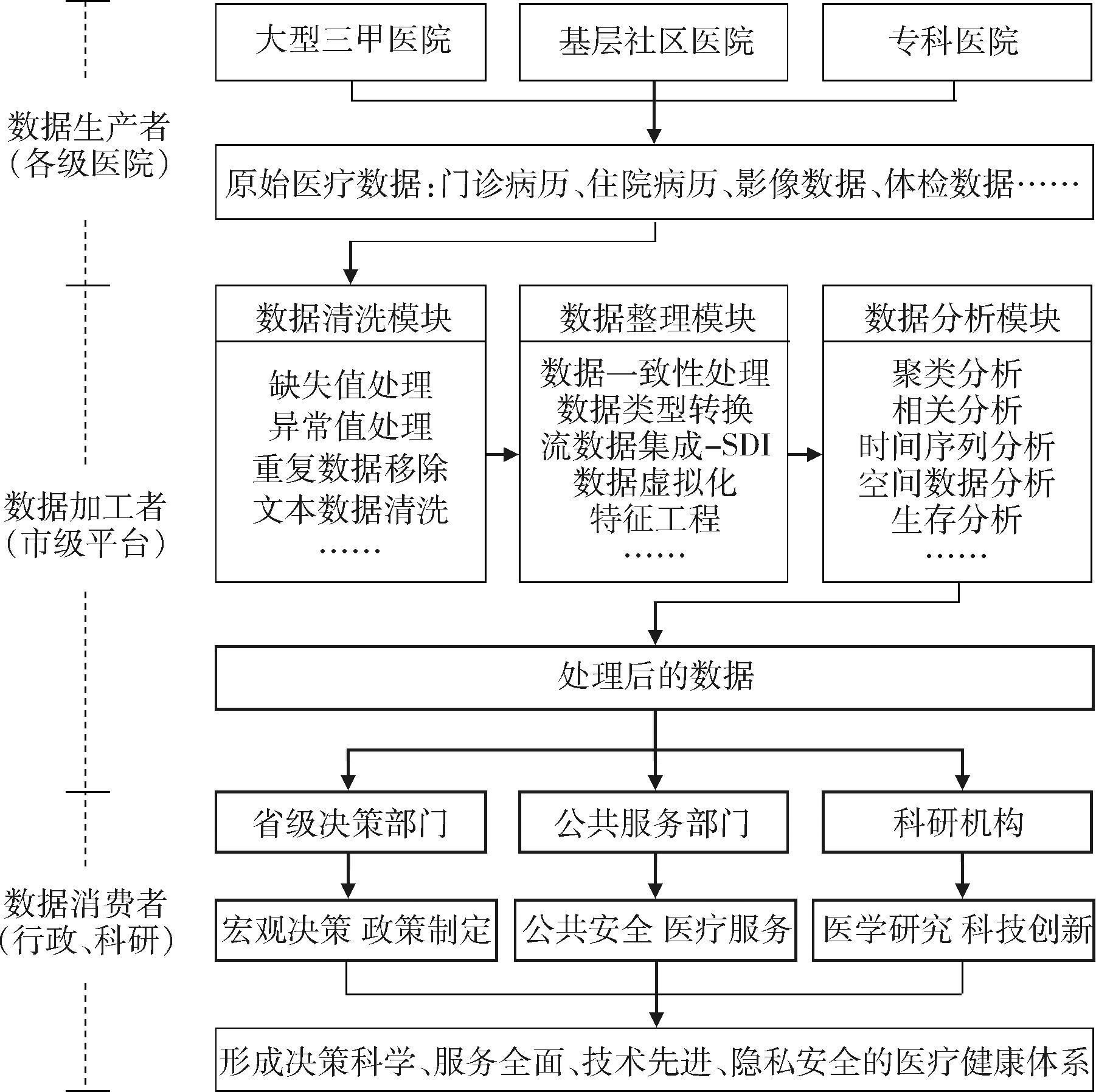 数据生产者主要包括各级医院,涵盖大型三甲医院、基层社区医院以及专科医院等,负责产生和收集医疗数据,即在日常诊疗中,详细记录患者症状、诊断结果、治疗方案和康复情况等信息。这些原始数据是数据协同体系的基础,其准确性和完整性直接影响后续分析和应用。大型三甲医院凭借先进的医疗技术和设备,积累大量疑难病症的医疗数据,对于医学研究和罕见病诊疗具有重要价值;基层社区医院虽然医疗资源相对有限,但能够收集大量常见疾病的发病和治疗数据,反映区域内居民的基本健康状况;专科医院则专注于特定领域疾病,拥有独特的病例资源。数据加工者主要为市级平台,承担数据处理任务。其运用专业的数据处理技术和算法,对来自各医院的数据进行清洗、整理和初步分析,如去除重复、错误的数据,对数据进行标准化处理,使其符合统一的格式和规范,以及通过多种分析方法挖掘数据背后的潜在价值,提取关键信息和特征。数据消费者主要包括省级决策部门、公共服务部门以及科研机构。省级决策部门利用数据进行宏观决策与政策制定;科研机构经授权使用数据推动医学研究与科技创新;公共服务部门直接面向居民,提供便捷的医疗健康服务,如跨省医保结算、电子健康档案查询、智能导诊等,使数据价值最终惠及百姓就医与健康管理。