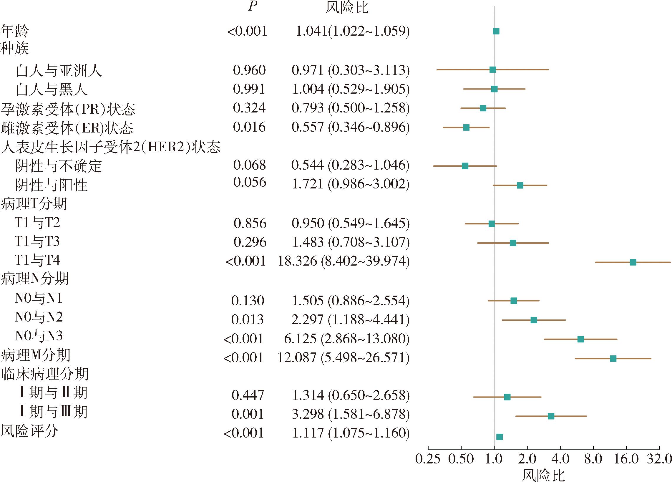图3 TCGA队列中多因素Cox回归分析森林图