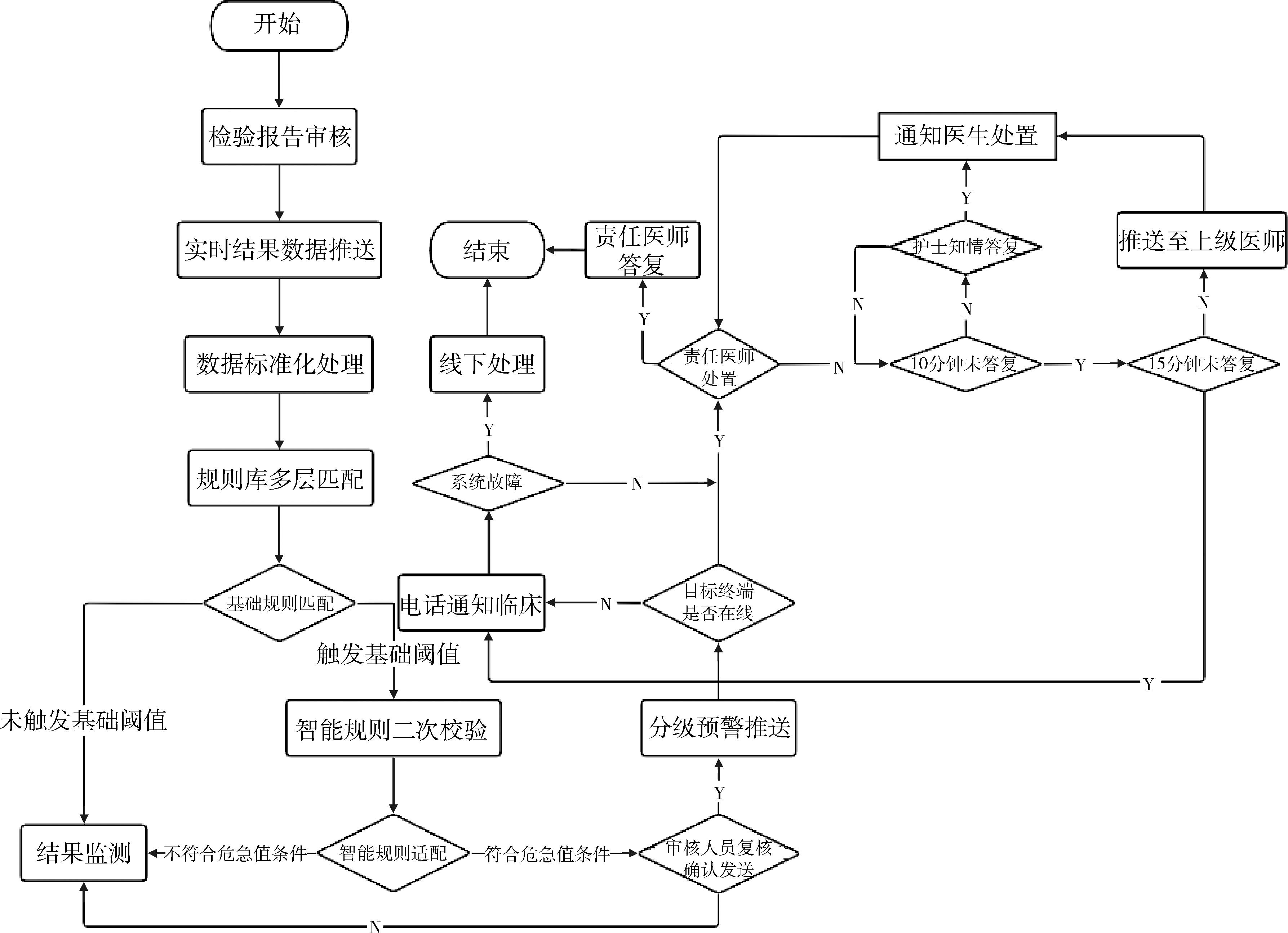 检验危急值是临床诊疗过程中的重要预警信号,直接关系患者生命安全[3]。当检验结果达到危急值时,医护人员应立即采取干预措施[4-5]。以往受限于早期信息化技术及管理机制尚未健全,医院临床检验危急值管理曾长期依赖人工纸质记录和电话报告模式。这种传统人工处理模式存在明显不足[6]:信息传递依赖电话通知,易因人员离岗或环境干扰产生延误;纸质记录效率低,且容易出现遗漏或错误,严重时威胁患者生命安全;非标准化的流程使救治响应时间参差不齐,影响整体医疗质量[7-8]