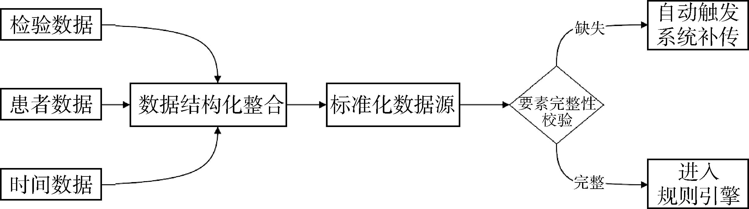 3.3.2 闭环管理流程构建 闭环管理流程设计遵循全要素覆盖、全流程可溯原则。要求系统覆盖检验危急值管理涉及的所有关键要素,包括数据、责任主体及临床情境。相关数据在进入规则库引擎前须校验完整性,以提升危急值识别准确性,降低假阳性率,数据要素结构化流程,见图3。参与检验危急值处理流程的责任主体包括检验技师、护士、主治医师、质控专员,其与覆盖要素的对应关系,见表1。针对不同检验危急值处置情境,如白班与夜间值班场景、普通患者与化疗患者治疗场景等,系统应能够智能适配,采用合适的消息通路、危急值触发阈值等,以提高检验危急值的处置效率与识别准确性。