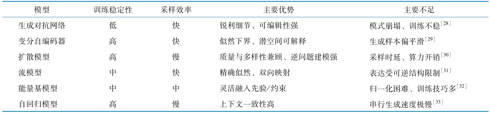 表1 主要生成式模型的优缺点对比