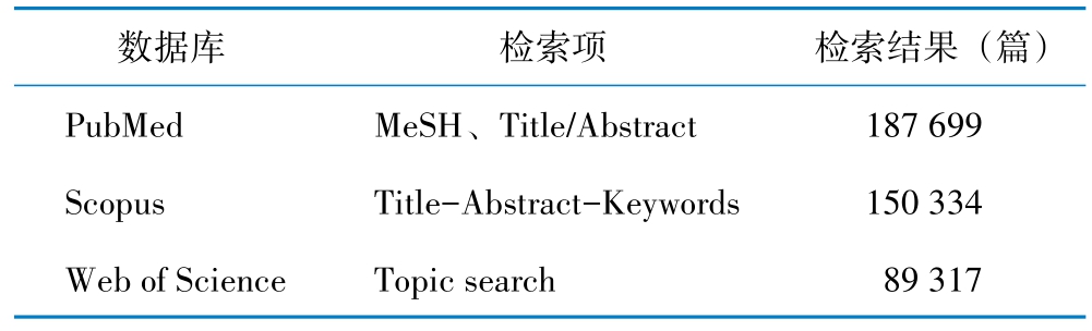 表1 各数据库检索项及检出文献量