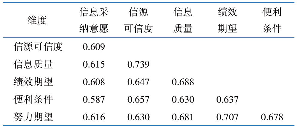 表4 基于Fornell-Larcker标准的检验结果
