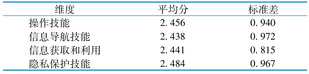 表1 老年人数字健康素养量表得分情况